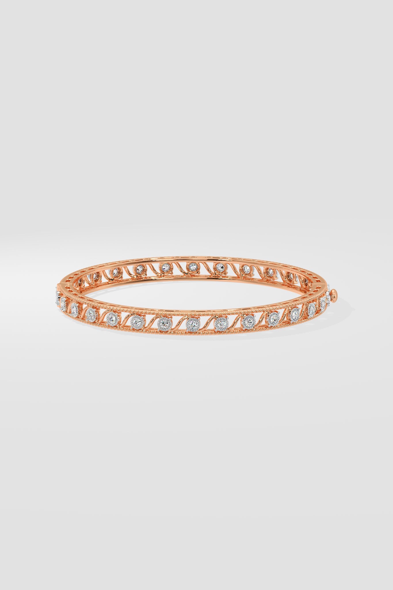 Classic Diamond Bangle, adorned with 0.15 ct diamonds in a graceful gold motif. Available in white or rose gold, each bangle is made to order for the perfect fit, marrying beauty with comfort effortlessly.