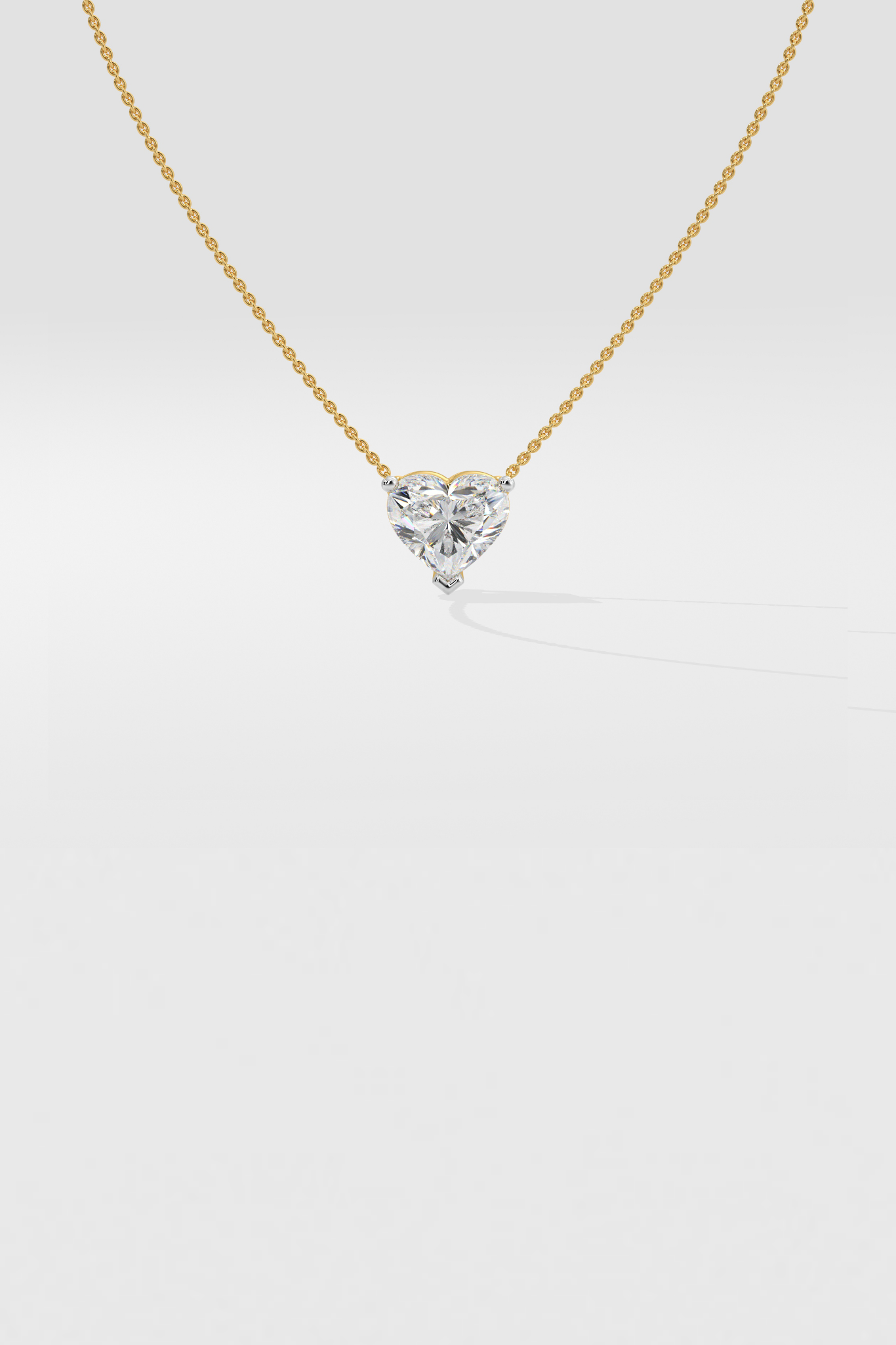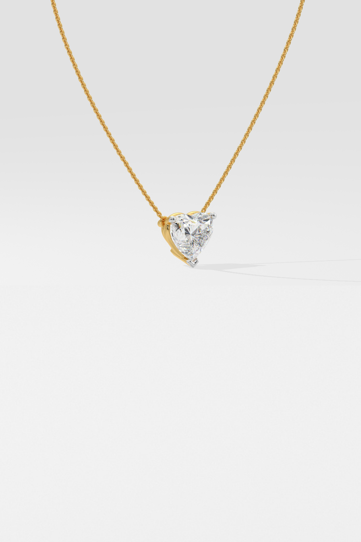 The 1 ct heart pendant goes easy with your neck stack. Set perfectly with a V prong giving it that minimal elegant charm. Colour options in Rose, White or Yellow gold. A perfect gift for your loved one.