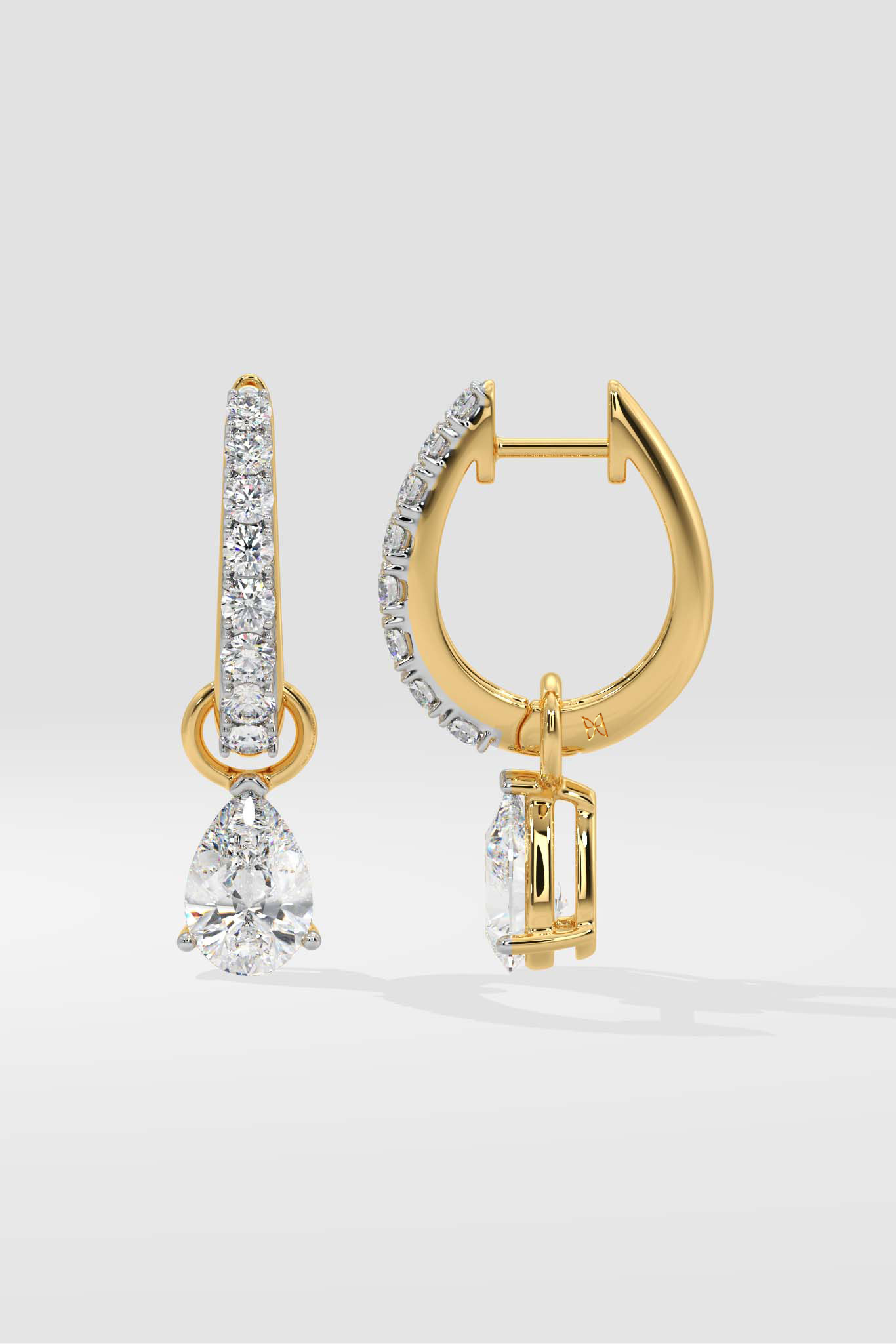 Upgrade your earring game with the Mini-Hoop Danglers - versatile and luxe! Featuring detachable 3/4 ct pear drops, these earrings give you the option to wear the huggies standalone as well.. Whether you're wearing them as classic hoops or adding a touch of elegance with the pear drops, these beauties will elevate any outfit. Beyond Classics is where Natasha & HOQ are commingling a cool, casual and effortless style.