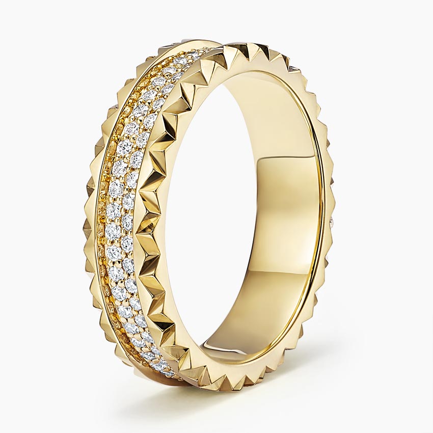 The rows of pavé diamonds and bright-cut border of this ring emanate the rays of the sun and wrap you in layers of light (1/2 total carat weight).