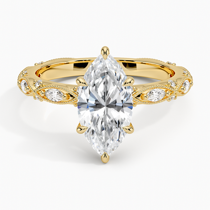 This exquisite Christina Marquise Engagement Ring boasts delicate milgrain detailing for a touch of texture and a celestial look. Handcrafted with lab grown diamonds, this stunning ring offers eco-friendly and conflict-free beauty. Expertly designed with an eye for detail, it makes for a meaningful and lasting symbol of love.
