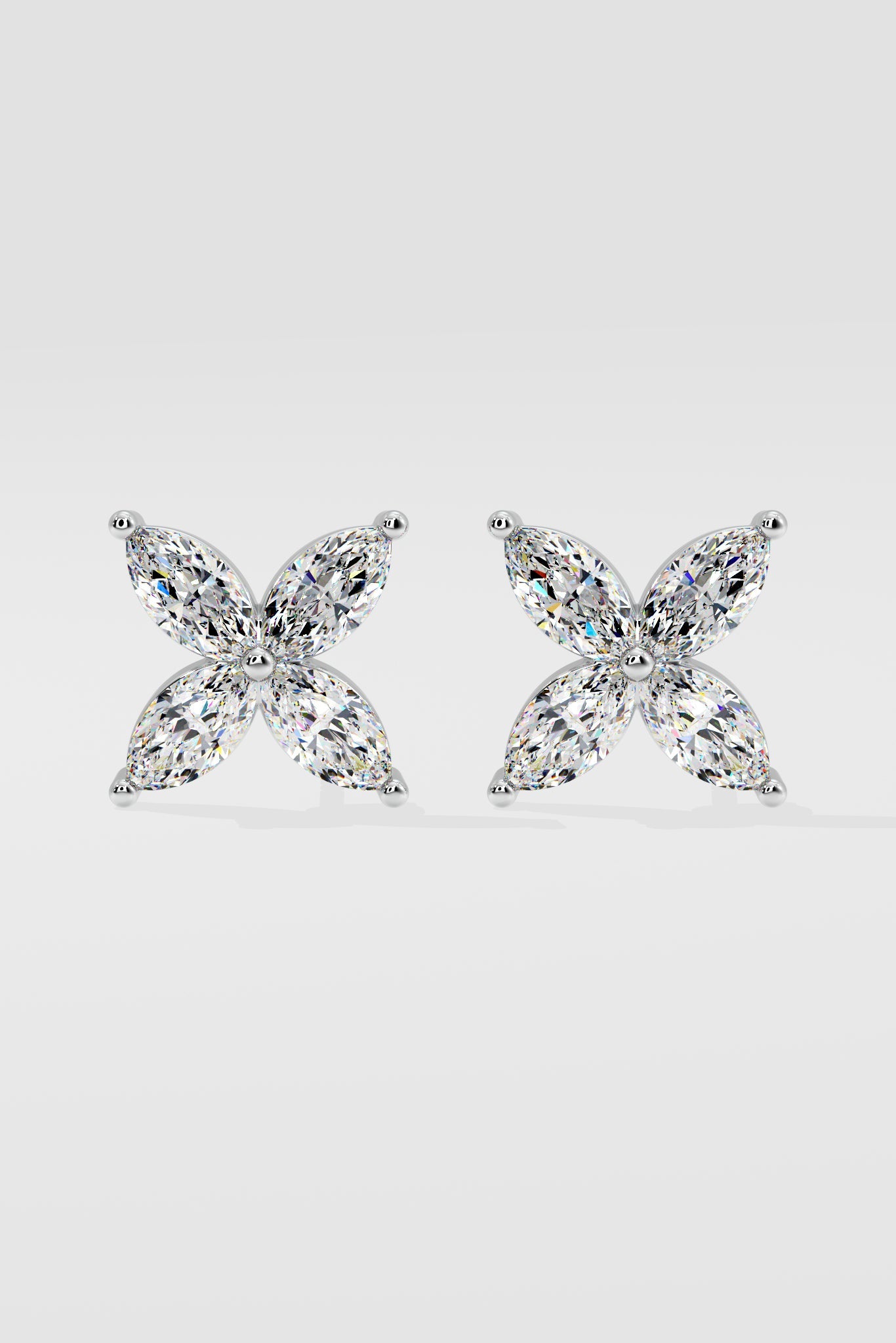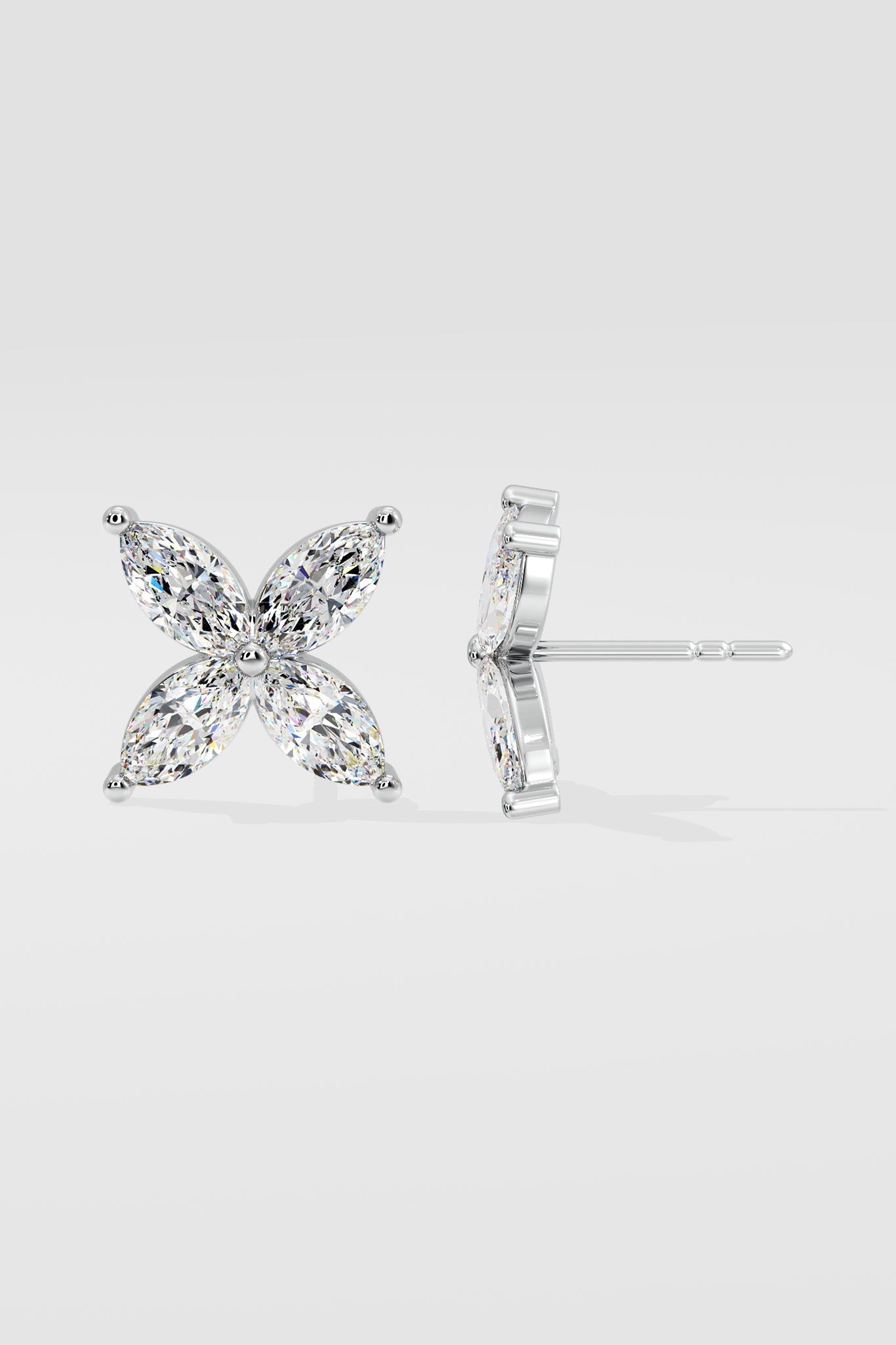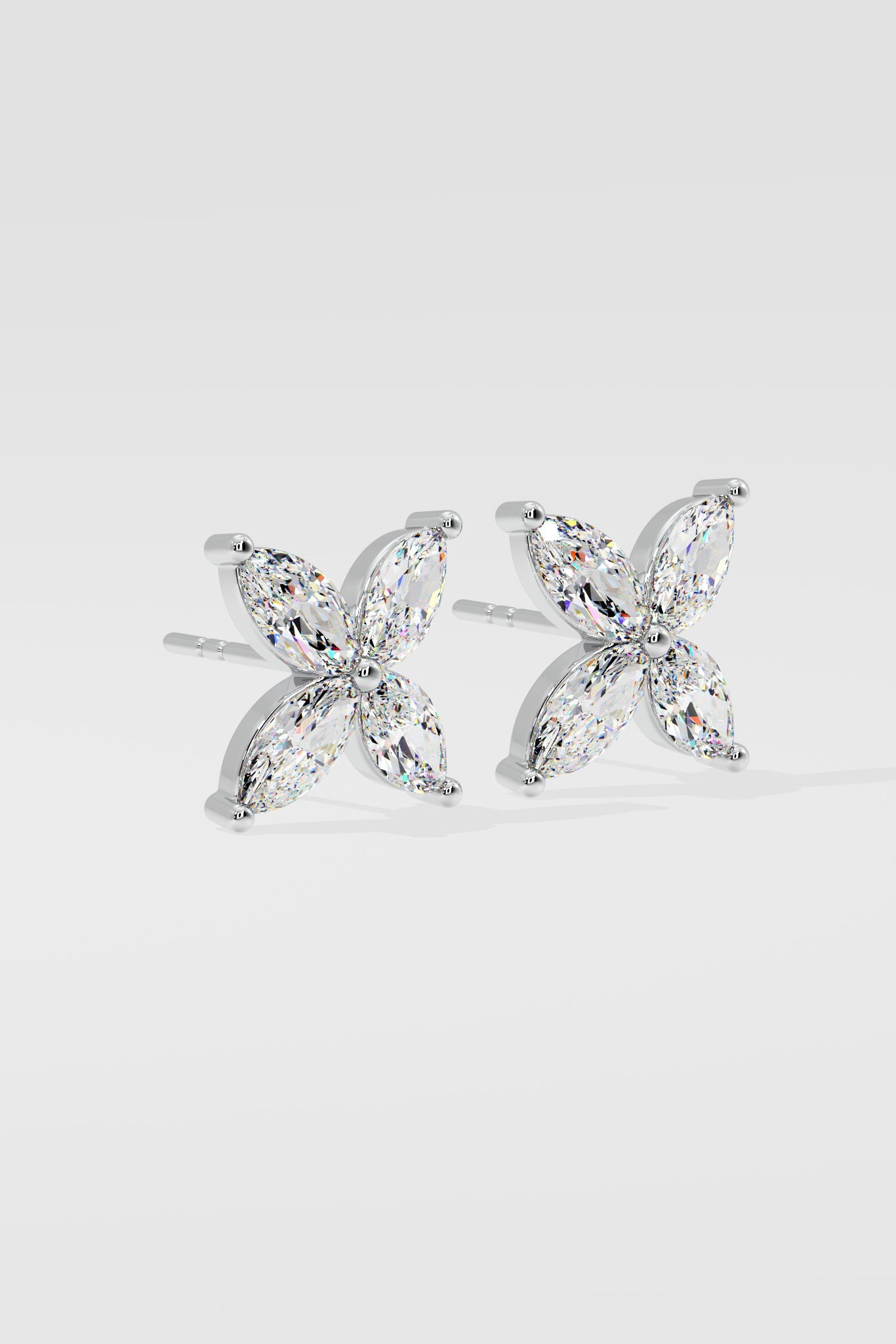 The clover earrings perfectly highlight the unique shape of the marquise diamond. They feature a 4 way petal design with 1/5 ct each diamonds. Perfect for everyday use or for as a special gift.