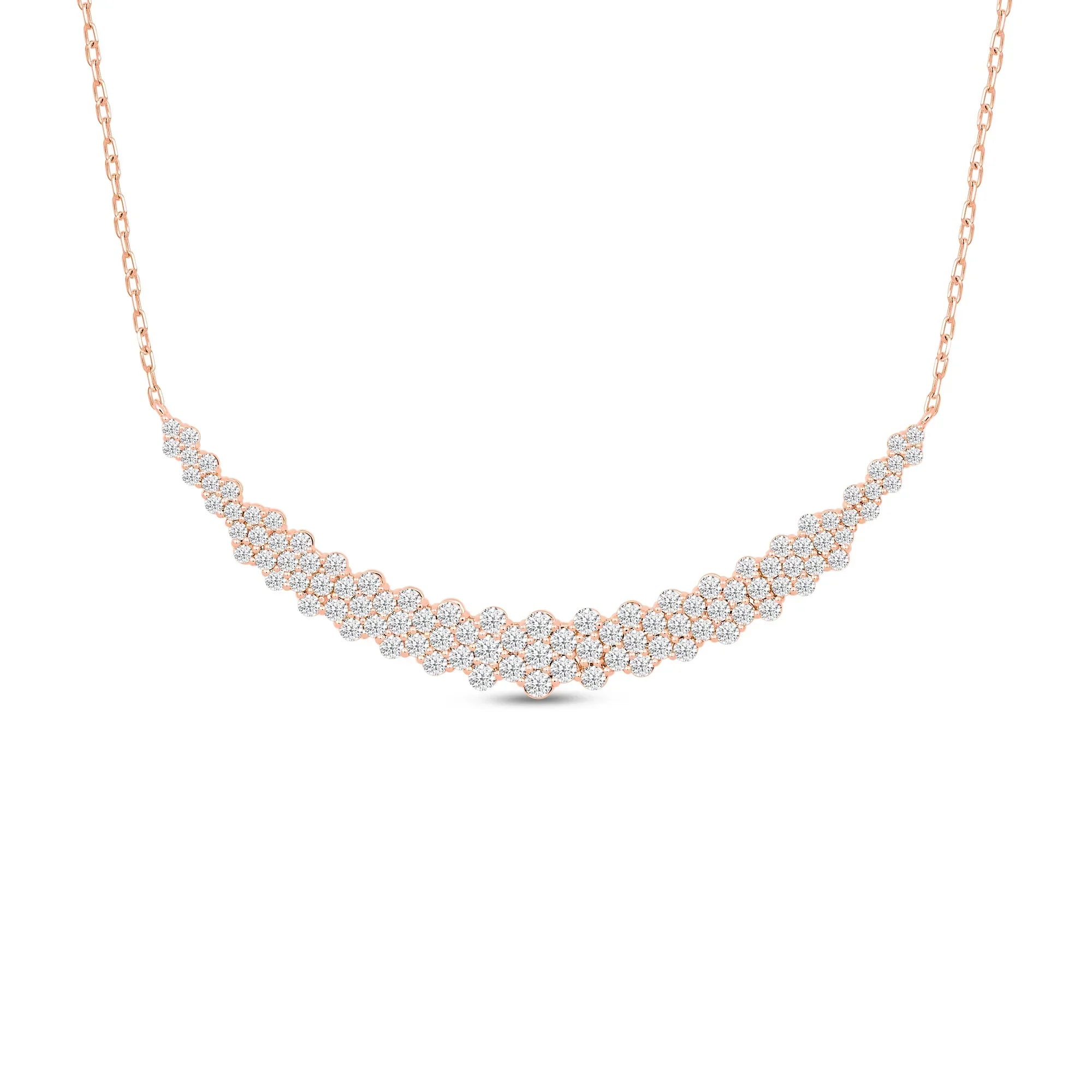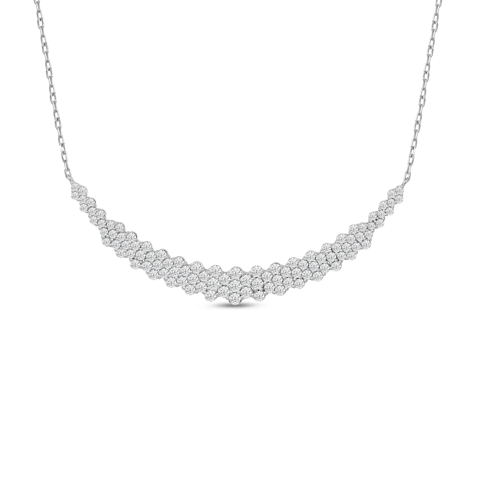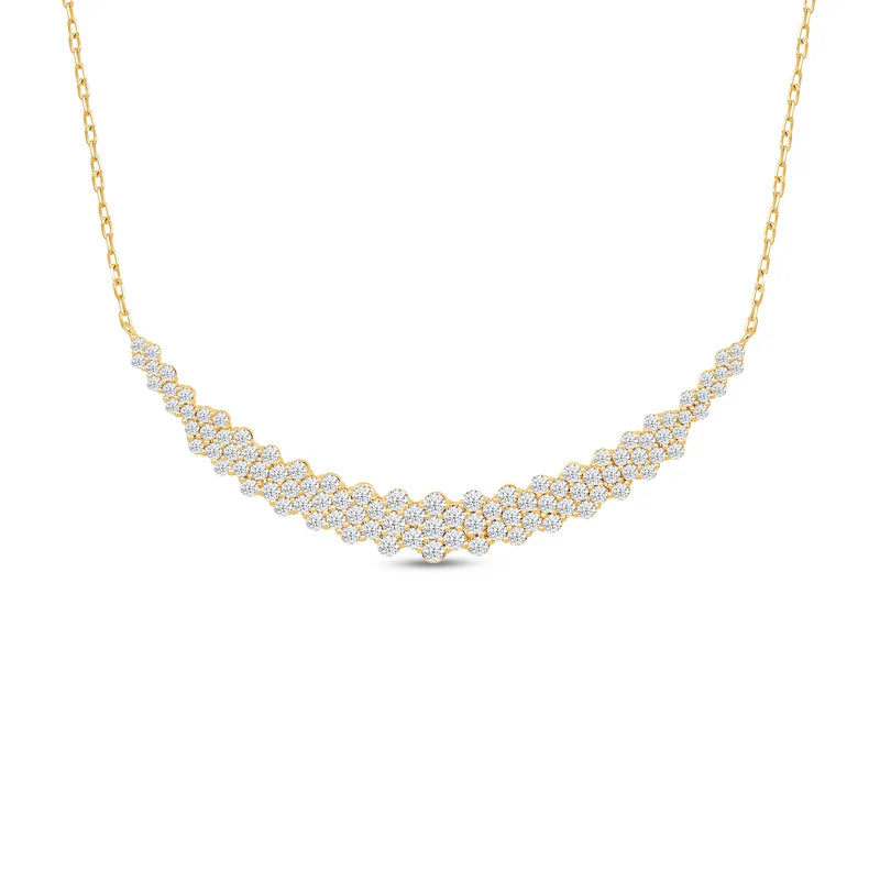 Experience the ultimate in luxury with our Cluster Mat Lab grown Diamond Necklace. The carefully arranged cluster of lab grown diamonds creates a stunning mat for your neck, adding a touch of elegance to any outfit. Made with hallmarked gold, this statement piece will make you stand out and is a must-have in your collection. Treat yourself or a loved one to this exquisite necklace, perfect for any occasion.