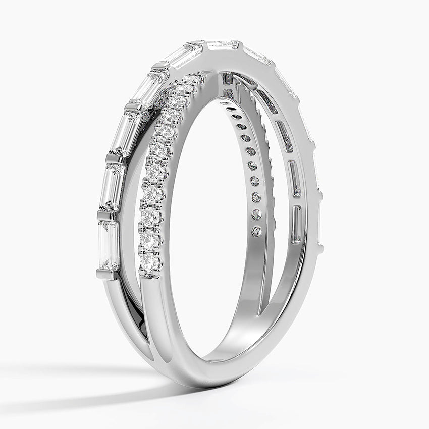 Shimmering strands of round and baguette lab diamonds cross over one another in this chic, eye-catching design (1/2 total carat weight).