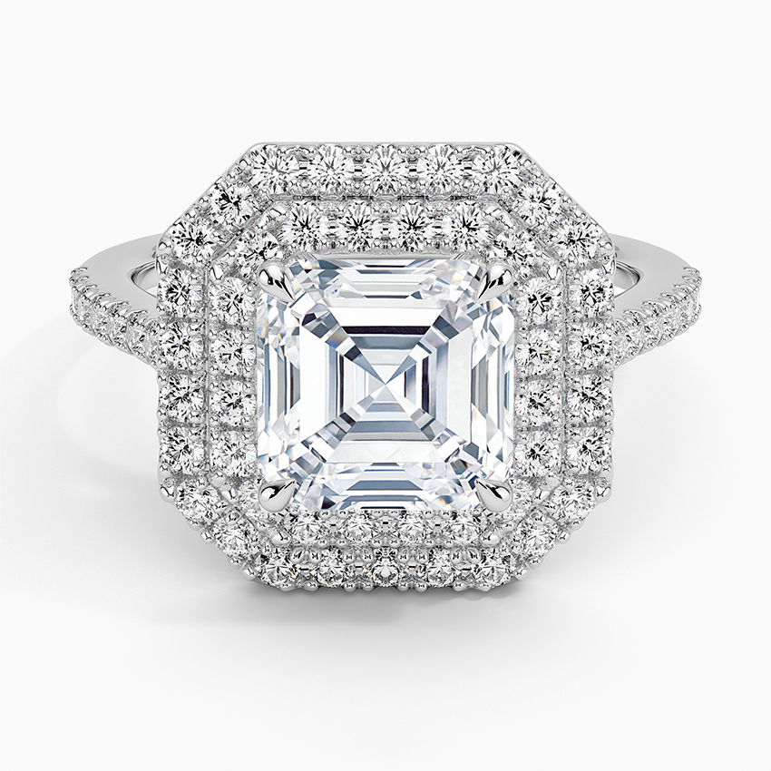 Double Halo Asscher Lab Grown Diamond Engagement Ring