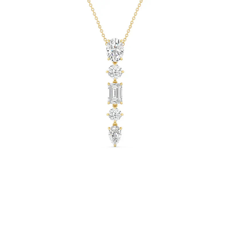 Elevate any outfit with our Five Shaped Lab Grown Diamond Pendant. Crafted with hallmarked gold, this statement piece features five mixed shapes of lab grown diamonds, making it the perfect addition to your collection. A quintessential daily wear item, it also makes for a luxurious and exclusive gift choice.