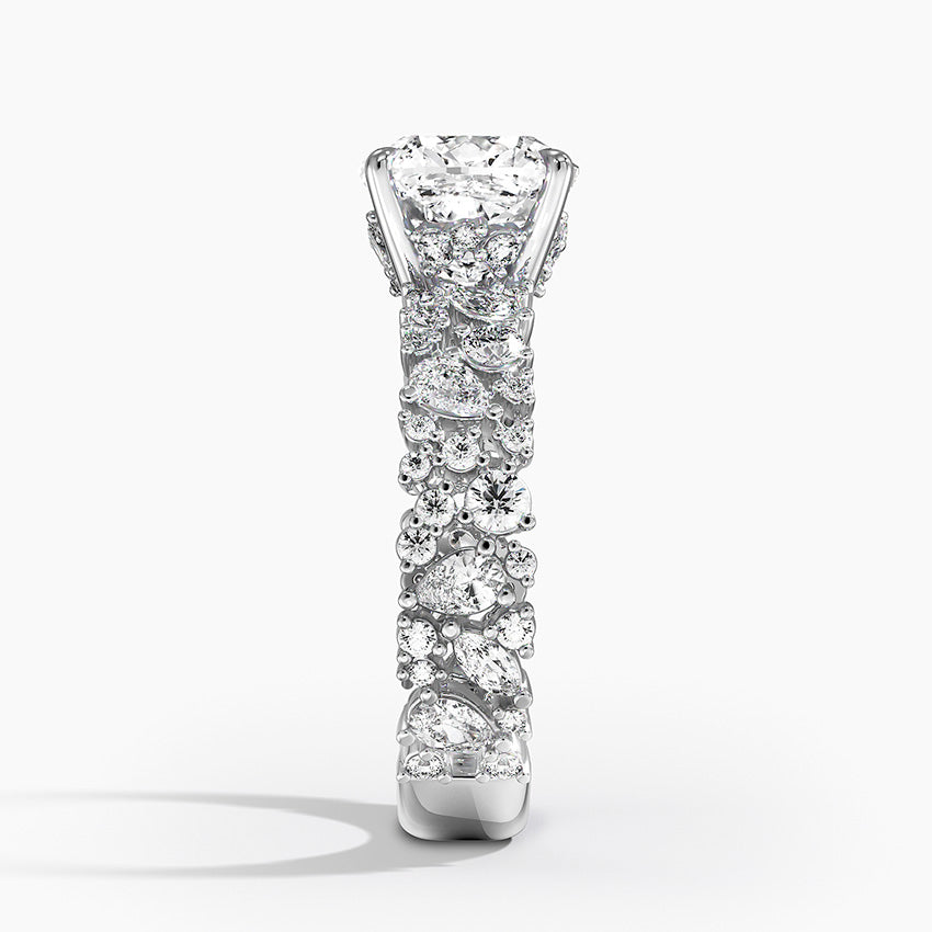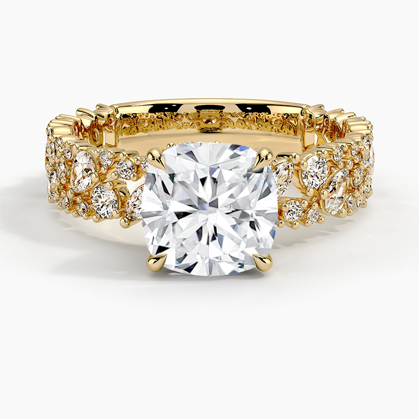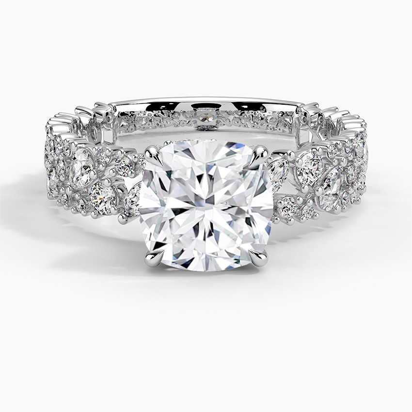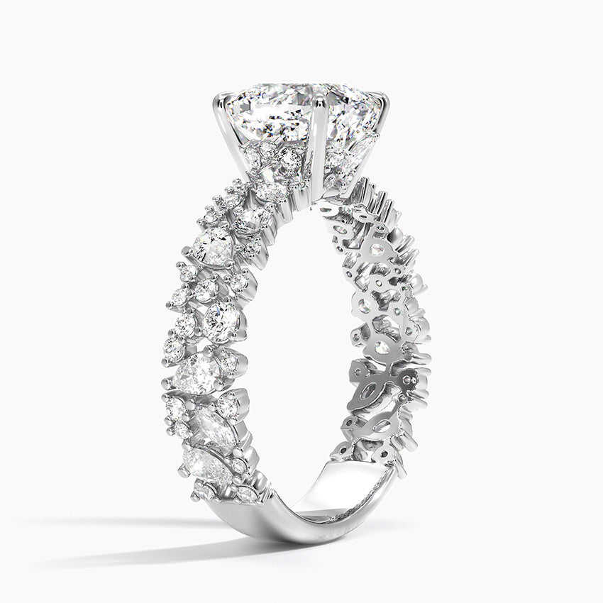 Expertly crafted with a thick band solitaire design and stunning lab grown diamonds, the Galaxy Cushion Diamond Engagement Ring boasts a unique eye ball maximizer feature that enhances the brilliance and clarity of the diamonds. Upgrade your engagement with this sophisticated and modern ring.