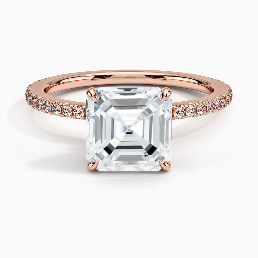 Hidden Halo Pavé Asscher Lab Diamond Engagement Ring