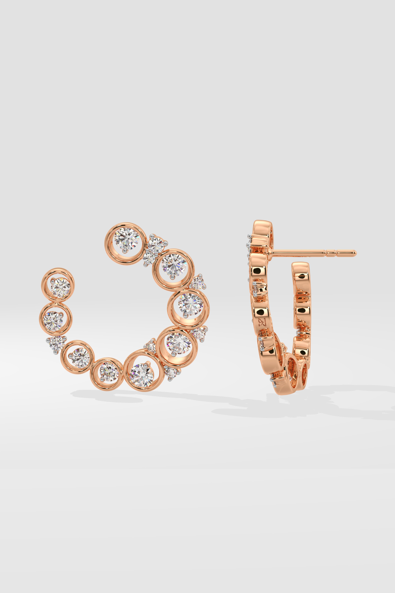 The Bubble Diamond Front Hoops are our signature statement front hoops; a contemporary circle design style with round brilliant cuts. These are made in Rose Gold not to fit in, but to strikingly stand apart. The Illuminate front hoops are a modern twist on the classic hoops, the intent is to allow maximum diamond exposure along with unprecendented attention.