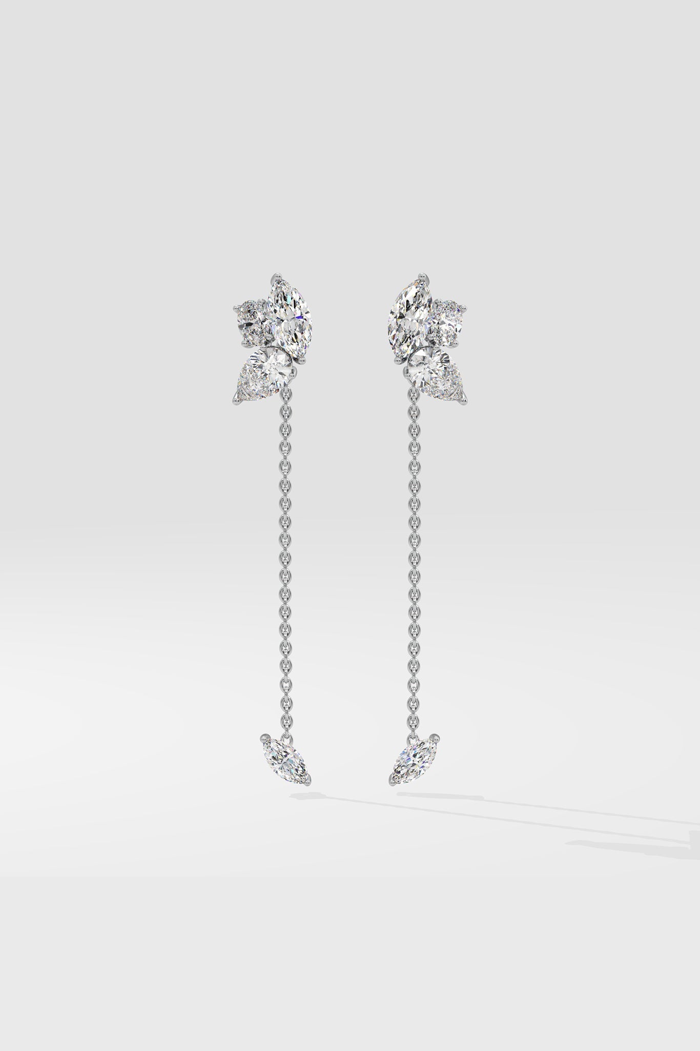 The Eden Drop Danglers combine mini solitaires effortlessly; they feature a combination of Ovals, Marquise & Pears in sizes from 1/5 ct to 1/2 ct diamonds. The bottom dangle is detachable which allows you to wear this beauty as studs as well.