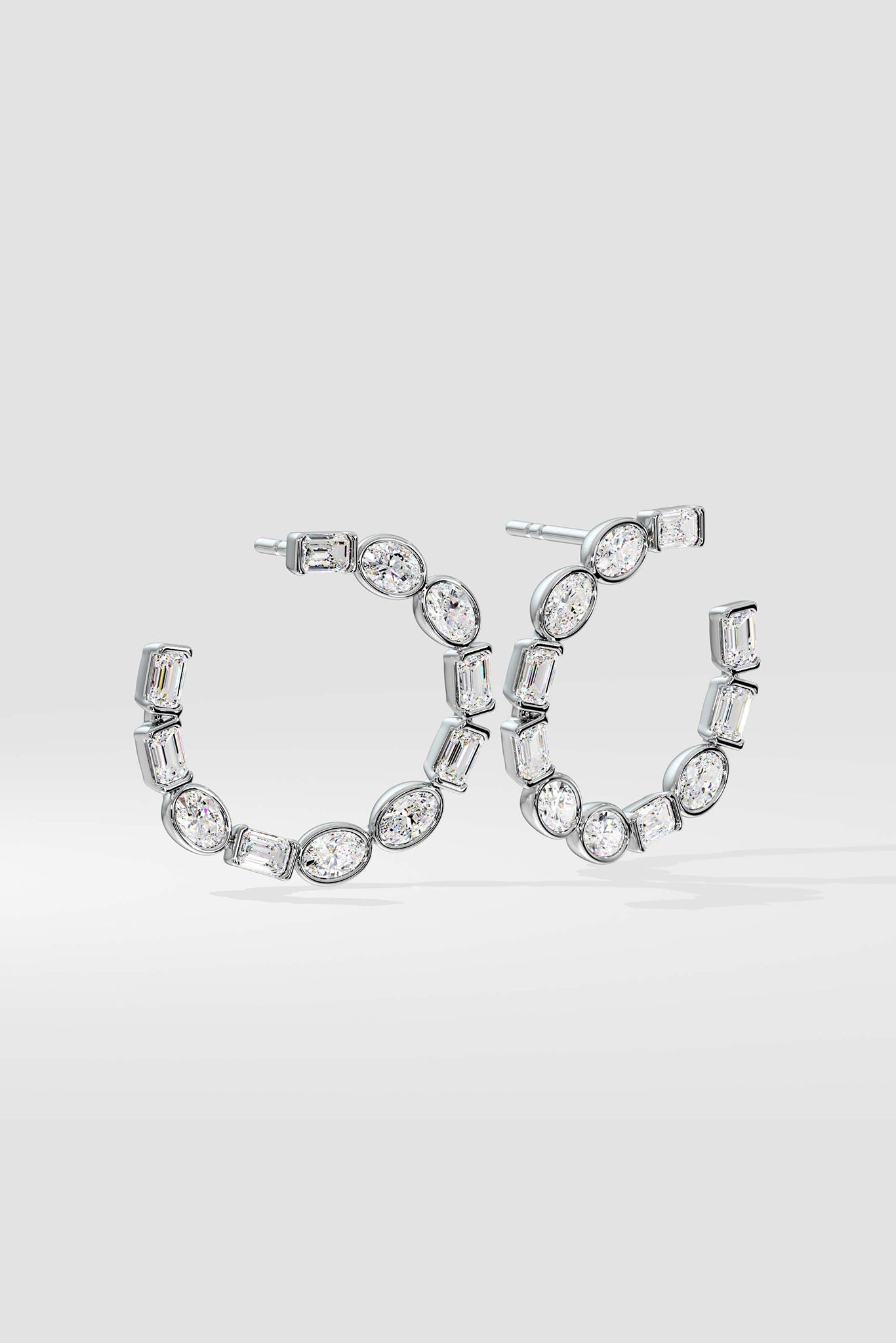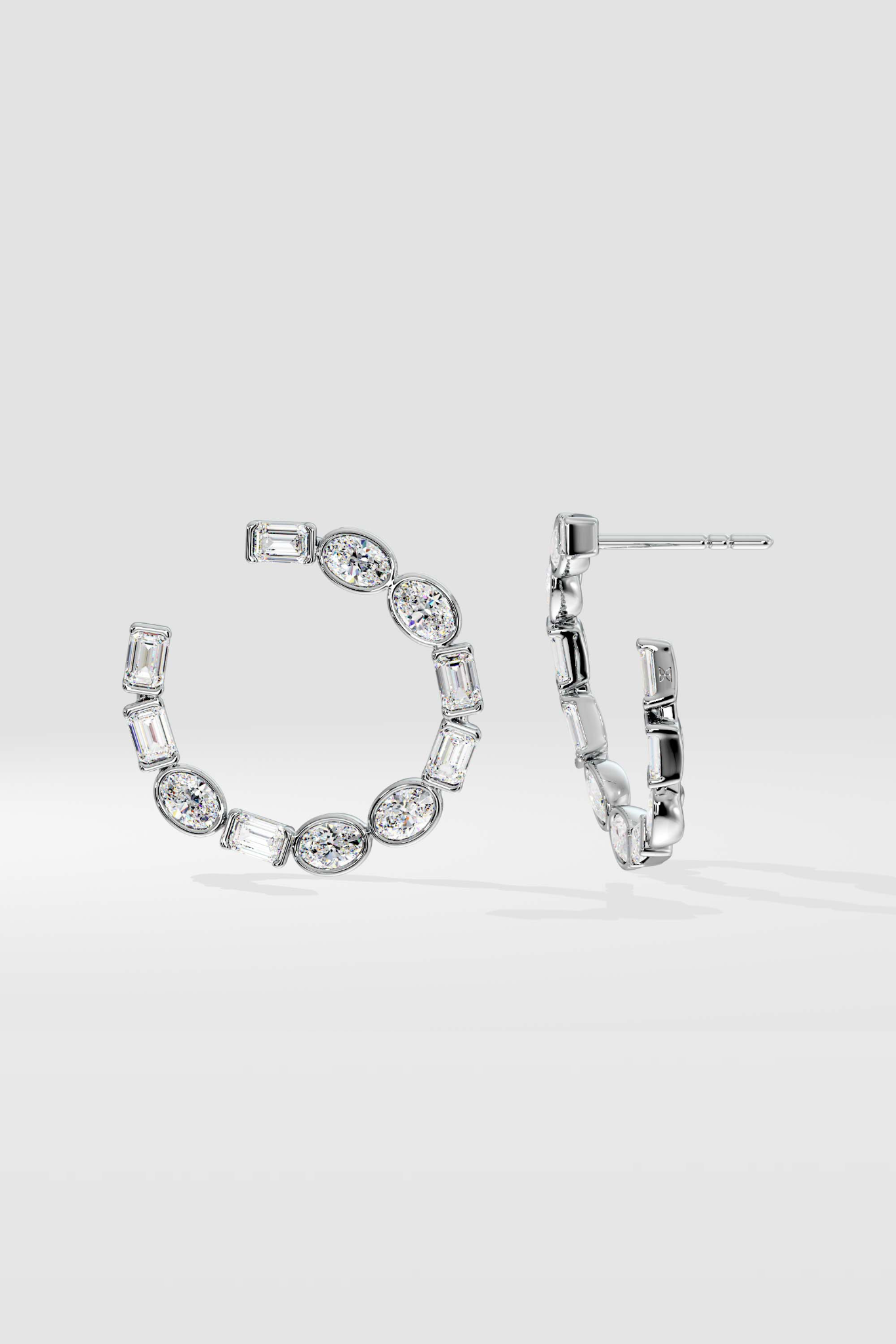 The Oval Emerald Front Hoops are 1/5 ct Ovals & Emerald cut diamonds alternatively set in 2 counts. The Illuminate front hoops are a modern twist on the classic hoops, the intent is to allow maximum diamond exposure along with unprecedented attention.