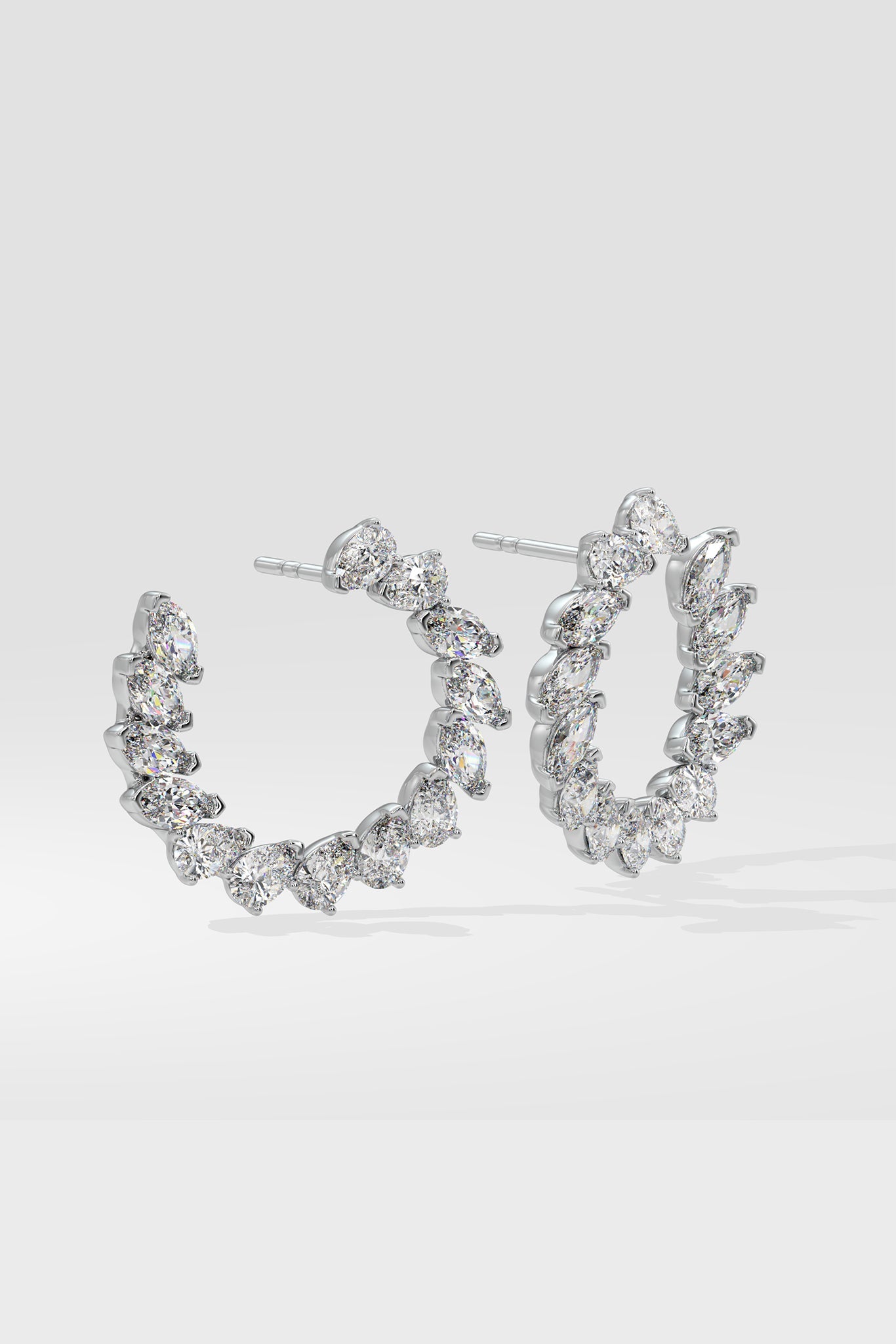 The Shimmer Front Hoops are a stunning call to attention; perfectly synchronised Marquise and Pear diamonds in 1/4 ct size combine seamlessly to make this stunner unmissable. The Illuminate front hoops are a modern twist on the classic hoops, the intent is to allow maximum diamond exposure along with unprecendented attention.