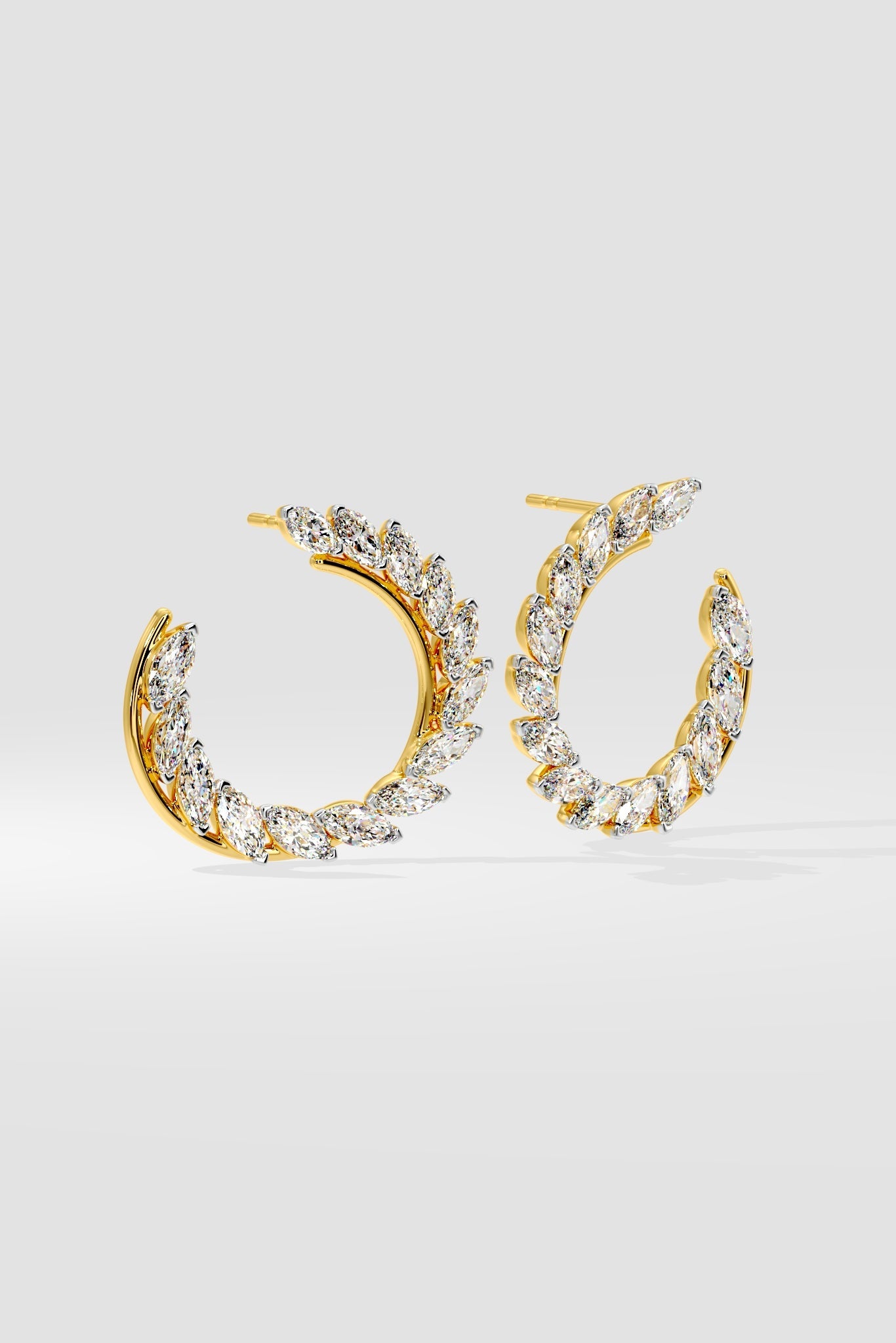 The Two-Tone Marquise Front Hoops are a the perfect combination of scintillating diamonds with the allure of solid gold; beautifully synchronised Marquise diamonds in 1/5 ct size align seamlessly to make this stunner unmissable. The Illuminate front hoops are a modern twist on the classic hoops, the intent is to allow maximum diamond exposure along with unprecendented attention.