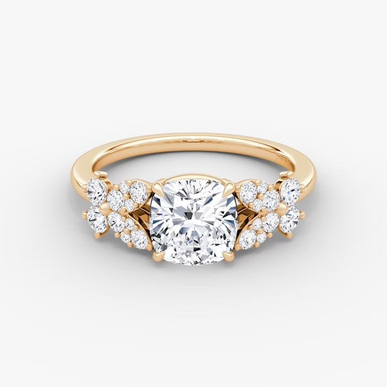 Introducing the Marigold Cushion Lab Diamond Ring, a stunning choice for engagements or special gifts. Its delicate garden bloom design and sparkling lab grown diamonds offer a perfect blend of beauty and sustainability. Embrace the elegance and eco-friendliness of this expertly-crafted ring today.