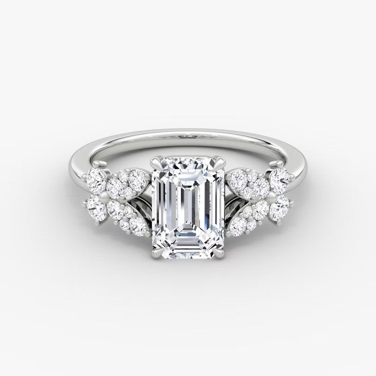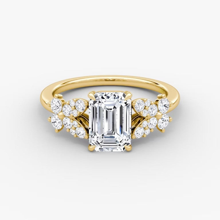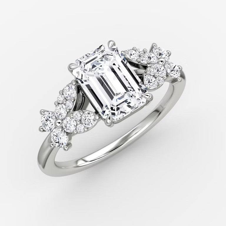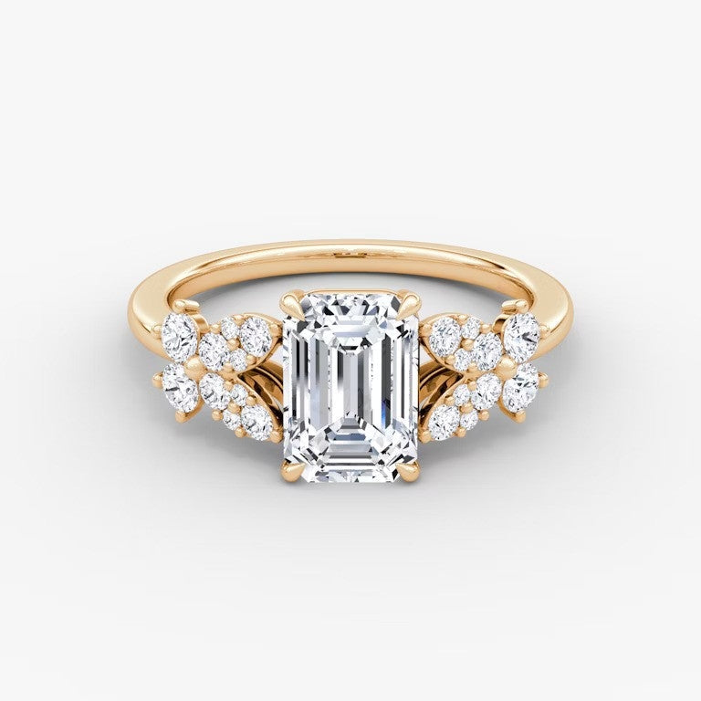Introducing the Marigold Emerald Lab Diamond Ring, a stunning choice for engagements or special gifts. Its delicate garden bloom design and sparkling lab grown diamonds offer a perfect blend of beauty and sustainability. Embrace the elegance and eco-friendliness of this expertly-crafted ring today.