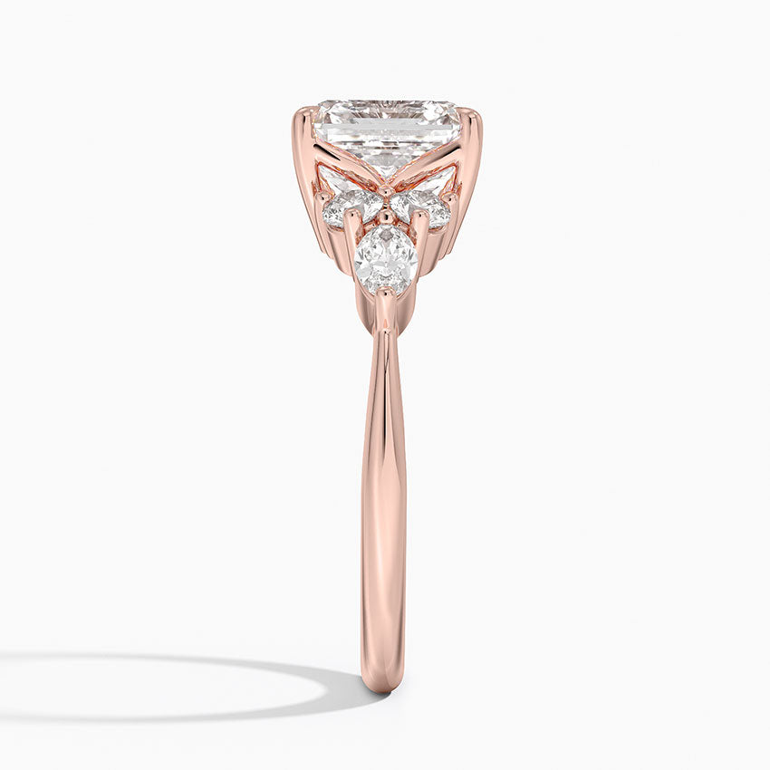 Elegant and timeless, the Nazia Asscher Lab Diamond Engagement Ring features a centre stone accented by delicate marquise and round diamonds. As a symbol of love and commitment, this exquisite ring is perfect for proposals or as a luxurious addition to any collection. Give the gift of sophistication and style.