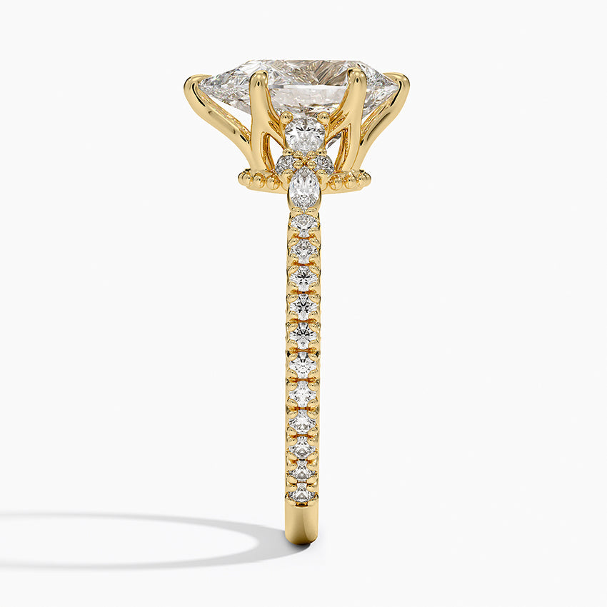 Elevate your proposal with our Roseline Pear Engagement Ring. Its unique rose petal design encrusted with lab grown diamonds and 3/4th pave adds a regal touch for a truly special moment. Make a lasting impression with this exquisite and ethically sourced ring.