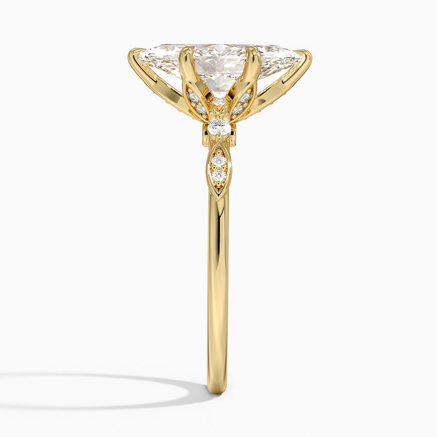 This Rachel Marquise Lab Grown Diamond Engagement Ring features a dazzling lab grown diamond center stone, adorned by intricate side stones. It is the perfect choice for a proposal, wedding gift, or special occasion. With its timeless elegance, it can also be worn daily. Elevate your style with this luxurious piece.