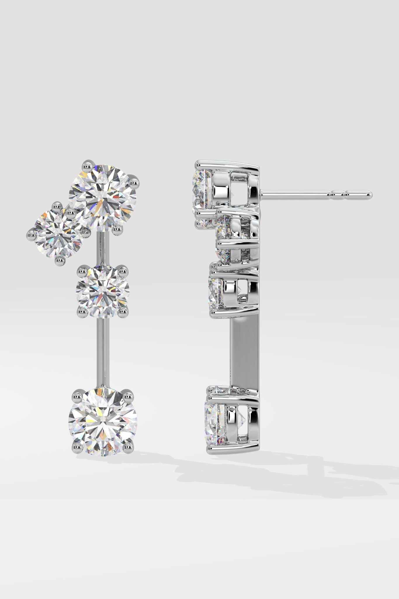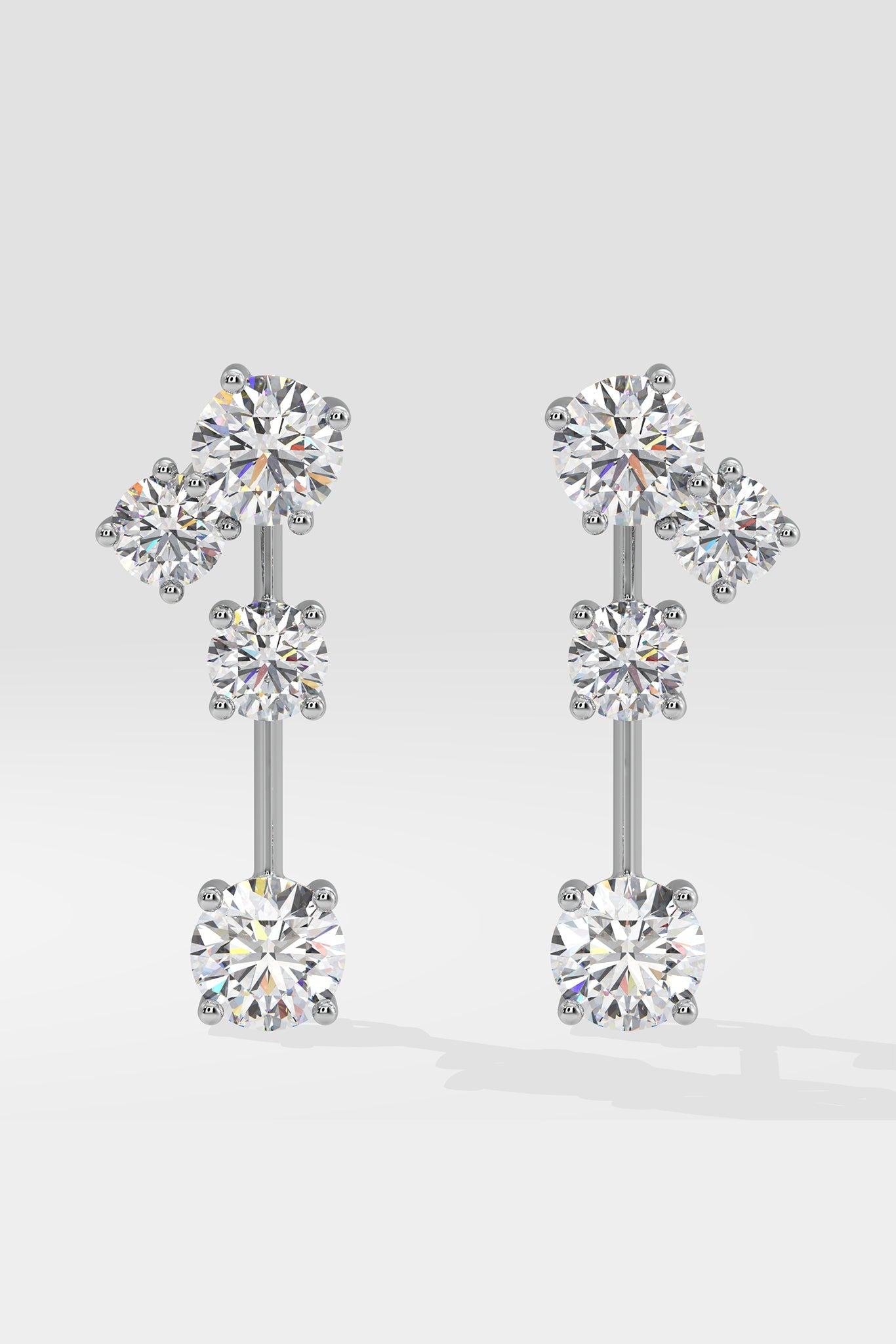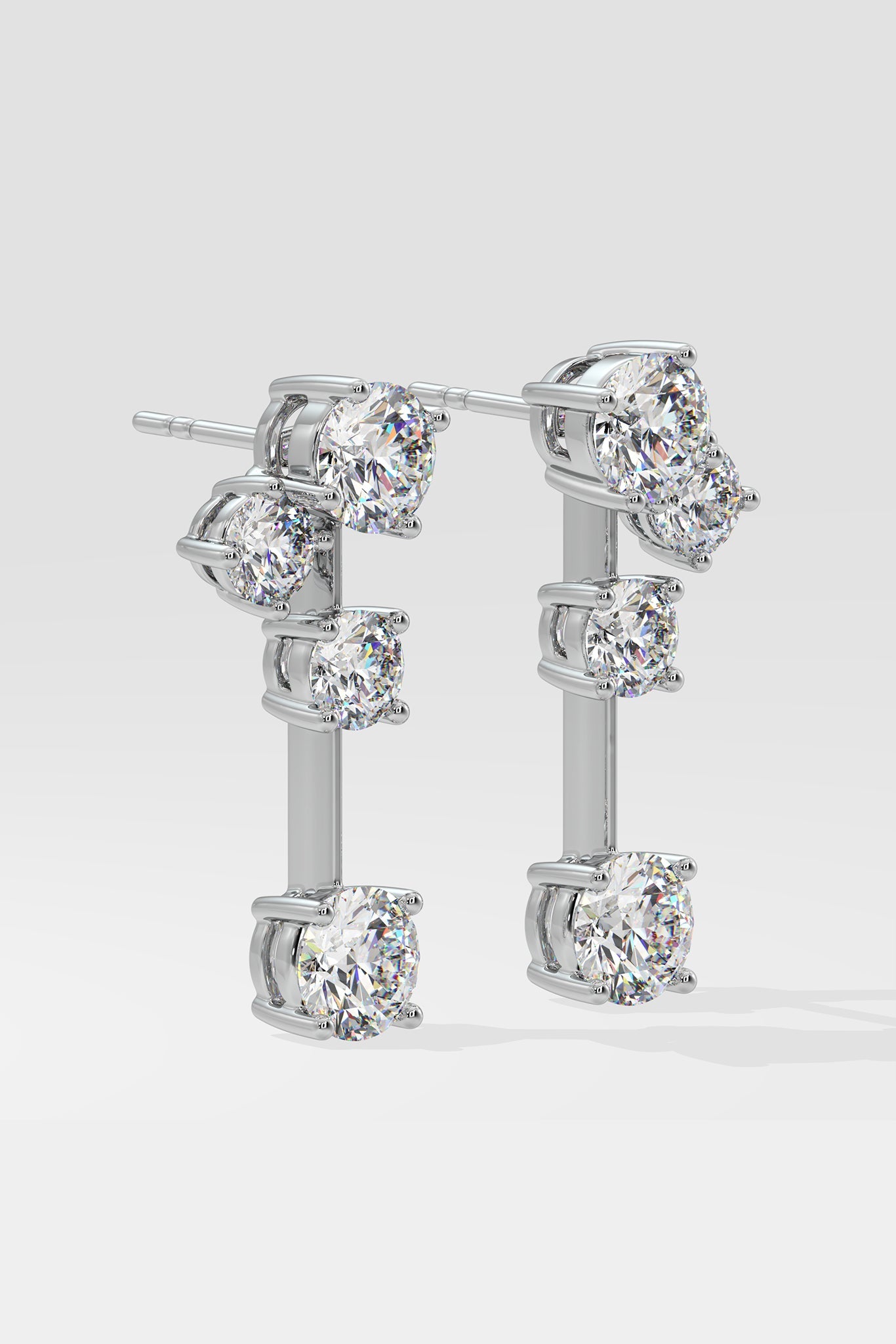 The Drop Solitaire Danglers feature 1/3 & 1/5 ct mini solitaires put together to form the perfect evening diamond style. Diamond danglers always work and the elegance of this simple style makes it a an easy gifting option as well.