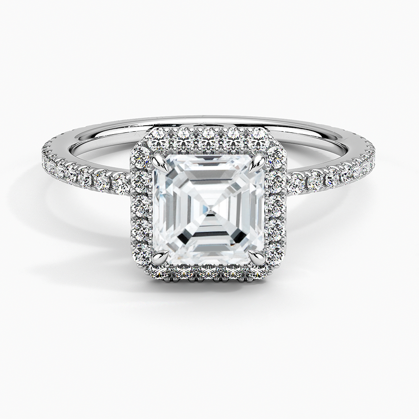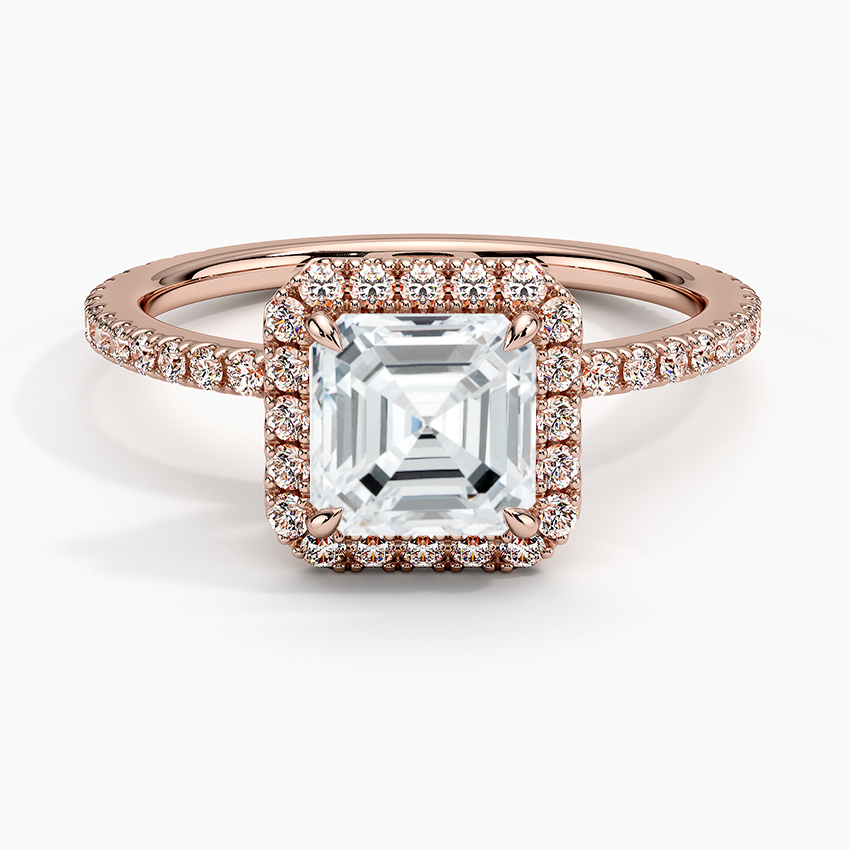 Sunflower Halo Pavé Asscher Lab Diamond Engagement Ring