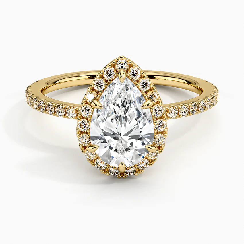 Sunflower Halo Pavé Pear Lab Diamond Engagement Ring