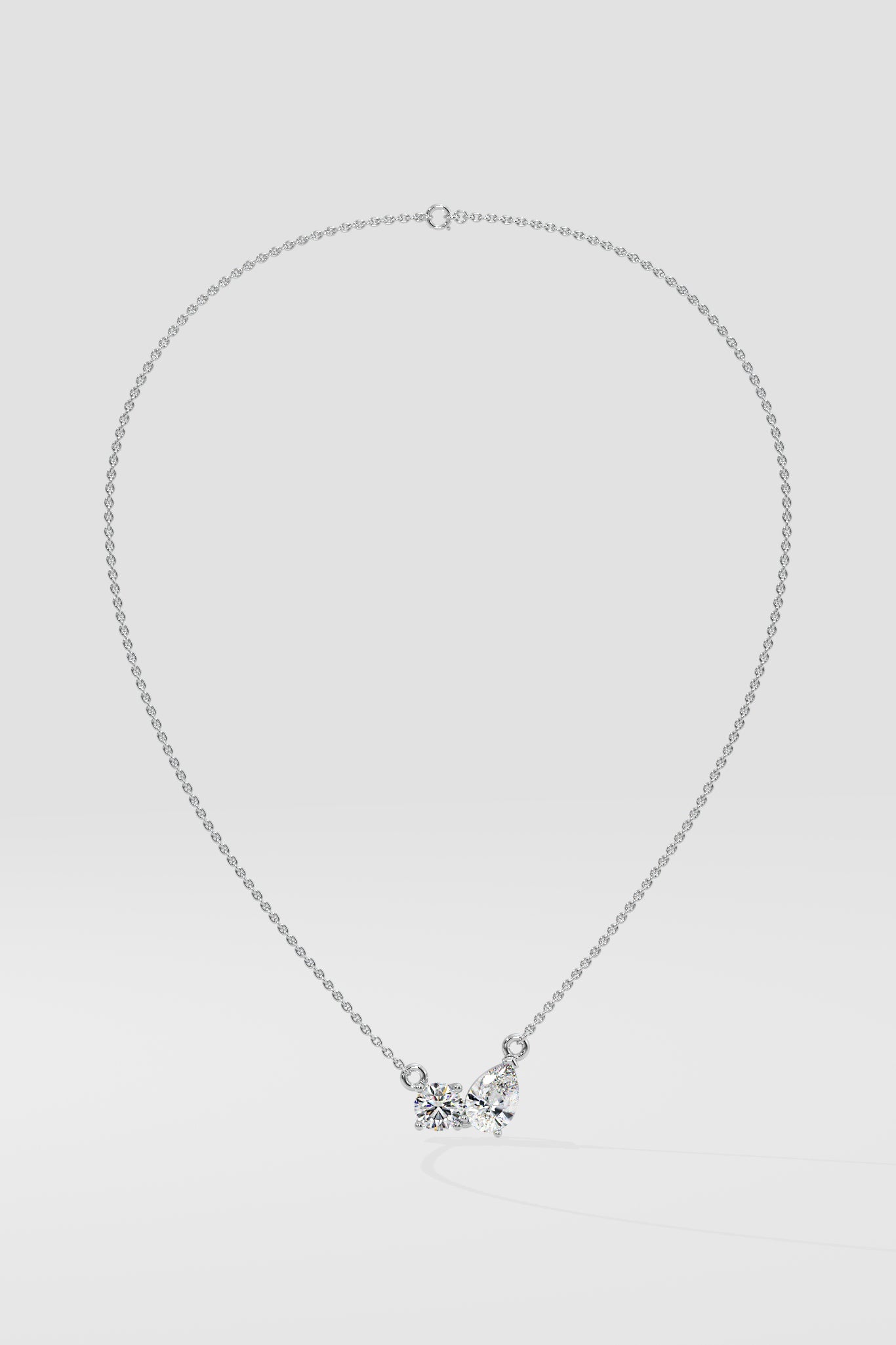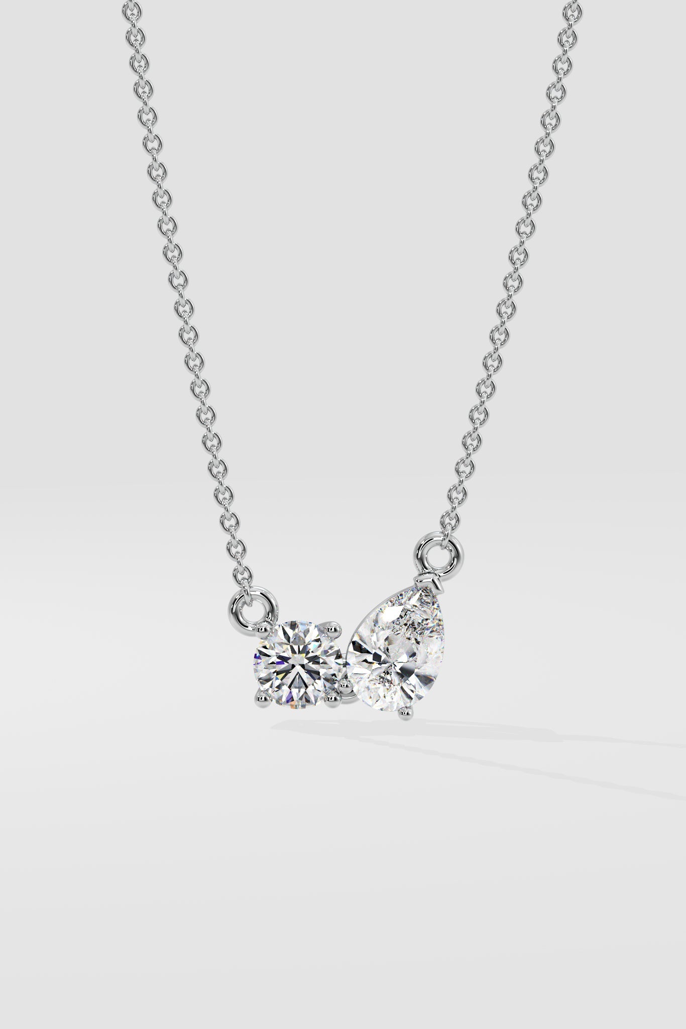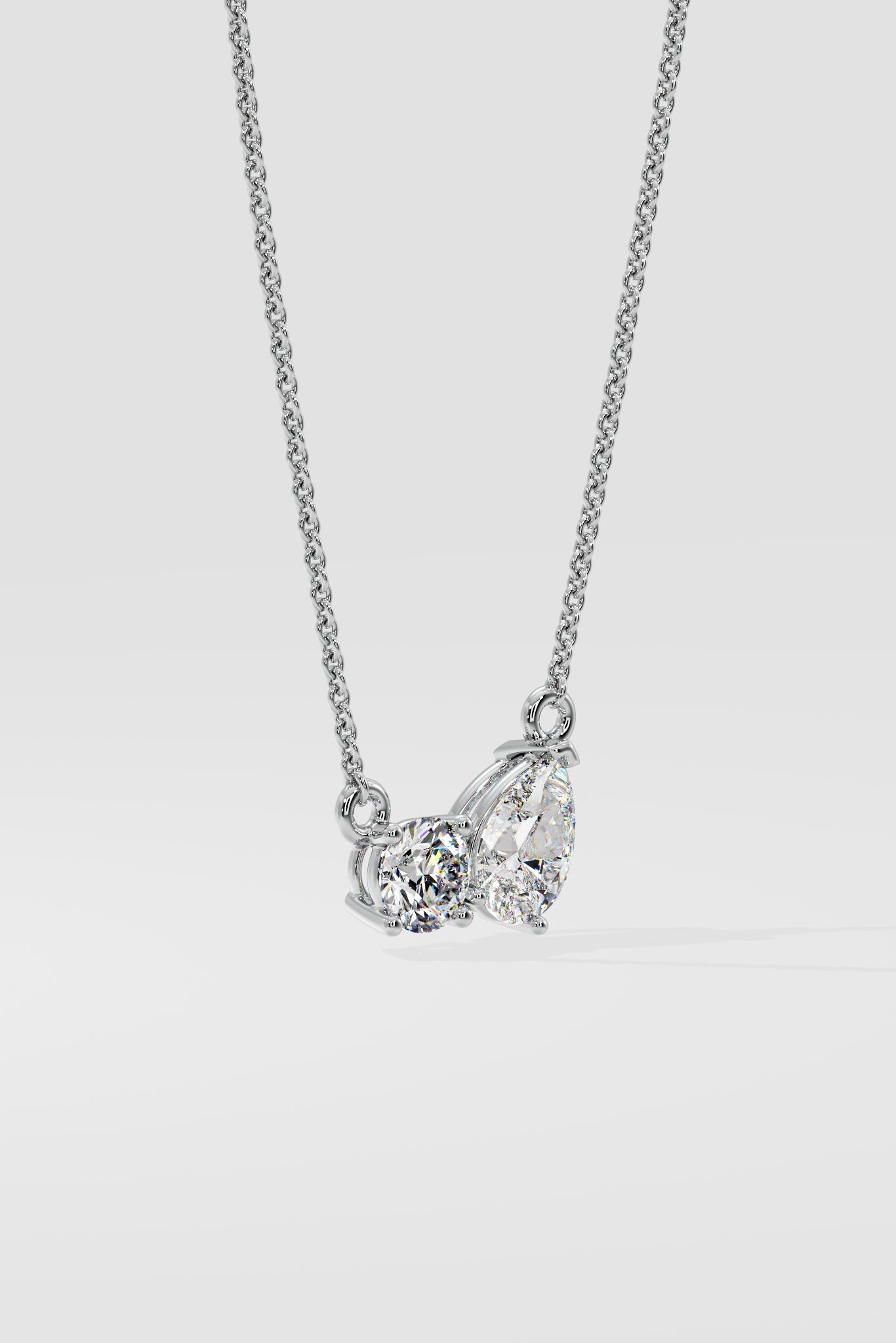 The Double Diamond Duo Necklace features a single 1/3 ct Pear...