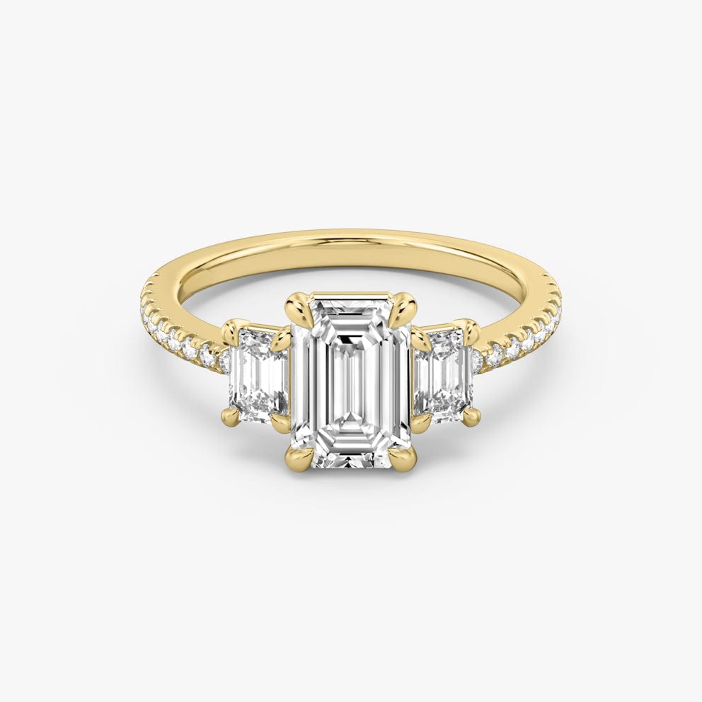 Three Stone Emerald Pavé Lab Diamond Engagement Ring