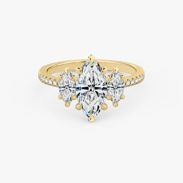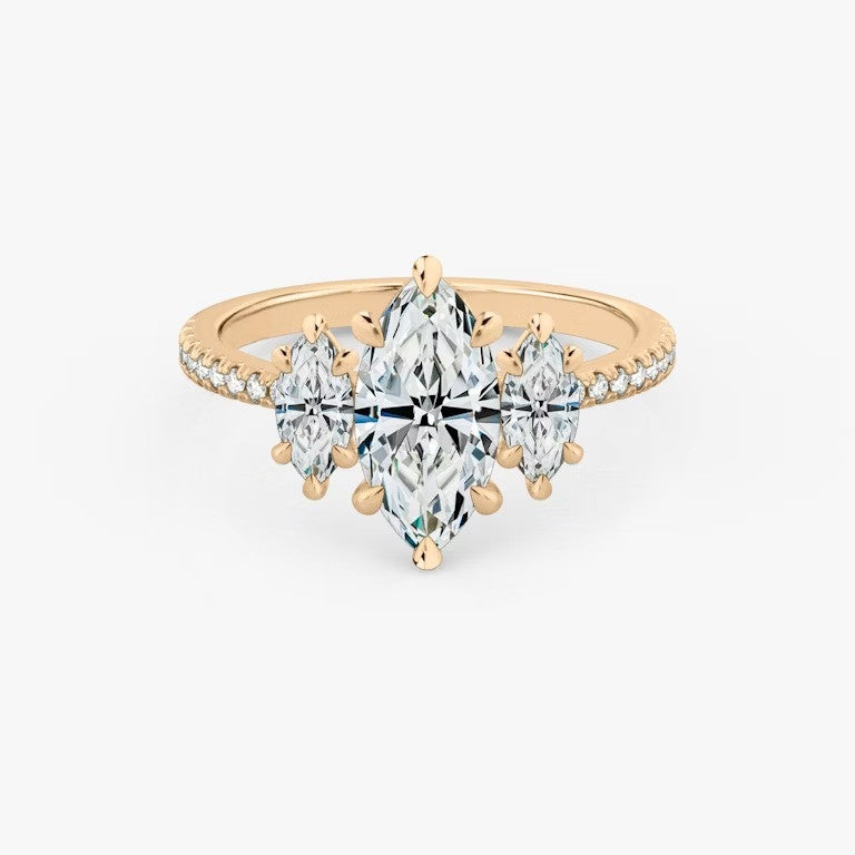 Three Stone Marquise Pavé Lab Diamond Engagement Ring