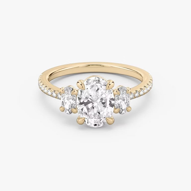 Three Stone Oval Pavé Lab Diamond Engagement Ring