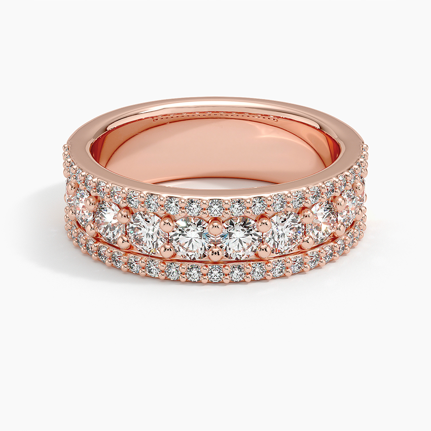 Jaw-dropping and luxurious, this diamond ring features large round diamonds surrounded by smaller diamonds that all wrap elegantly around the band for a glamorous, eye-catching look (1.2ct total carat weight).