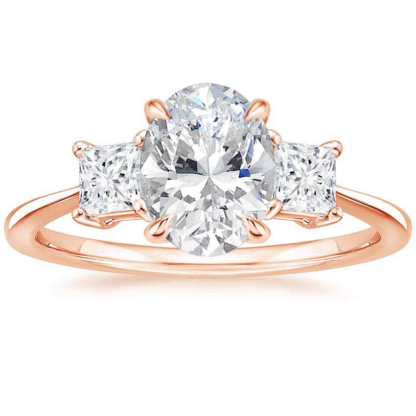 Elevate your proposal with this magnificent Triplets Oval Cut Engagement Ring. Featuring princess accent side stones, lab grown diamonds, and a stunning three stone design. Enjoy the beauty and quality of lab grown diamonds at a fraction of the cost.