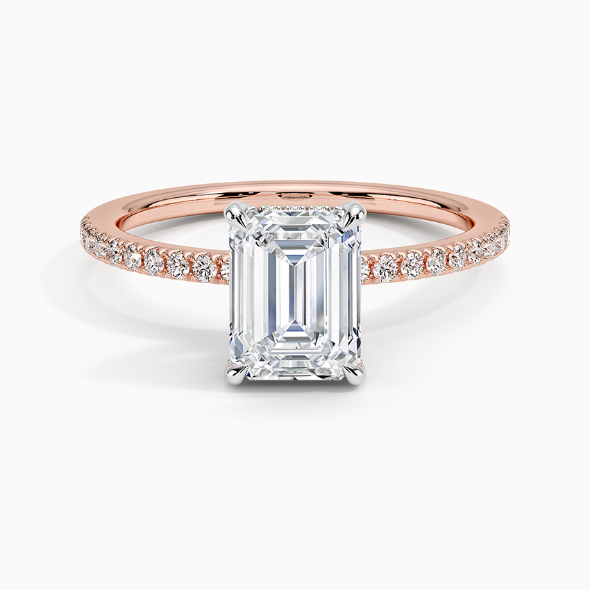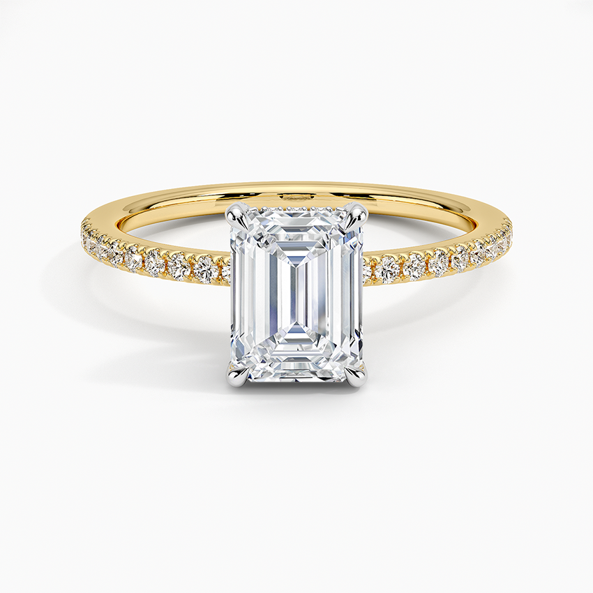 Two Tone Pavé Emerald Lab Grown Diamond Engagement Ring
