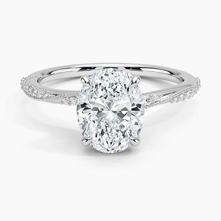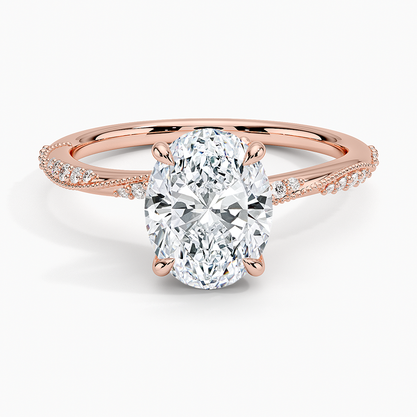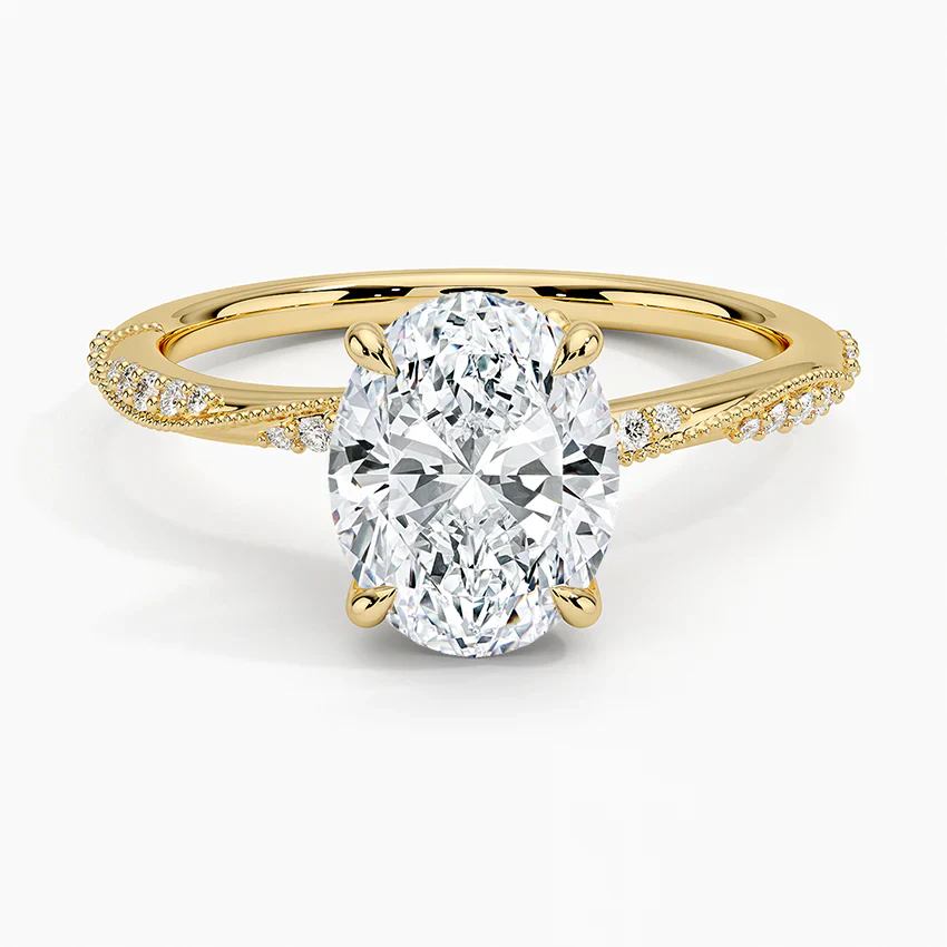 Introducing the Tyra Oval Lab Grown Diamond Ring. Its milgrain detailing and lab grown diamonds exude sophistication. Perfect for proposals and as a wedding or everyday ring. Add it to your collection for a touch of luxury.