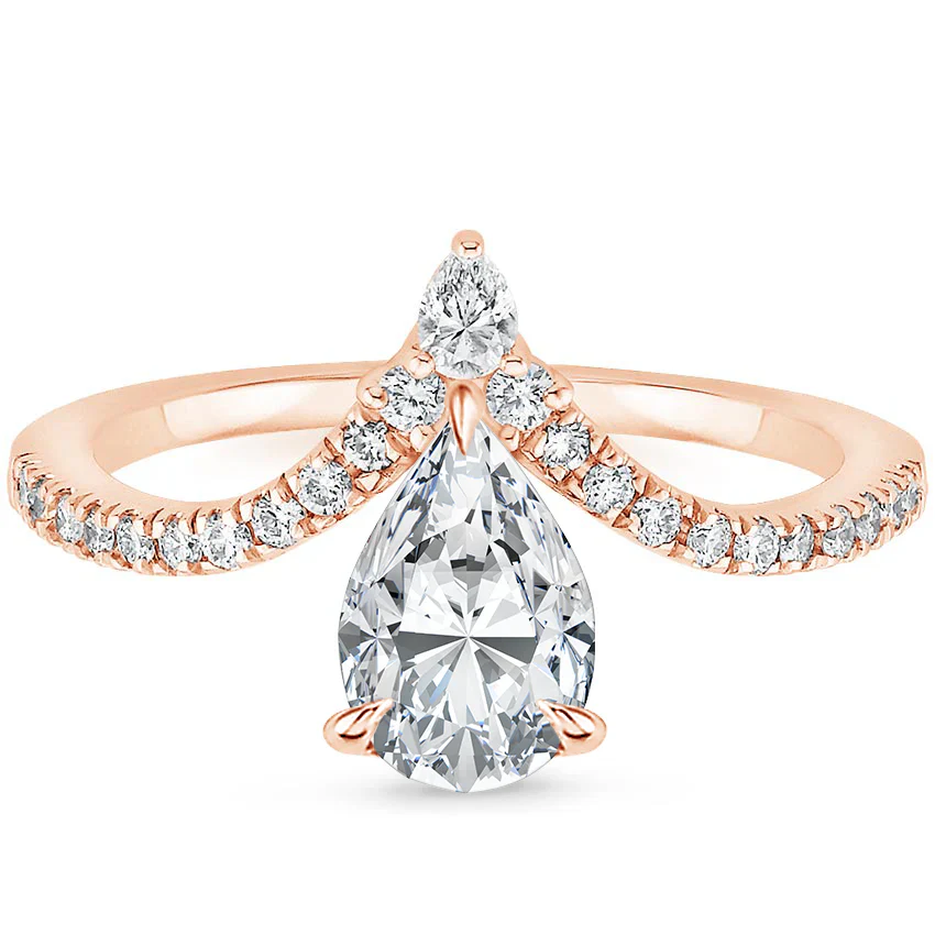 This Venessa Pear Engagement Ring features a distinctive V shape design...